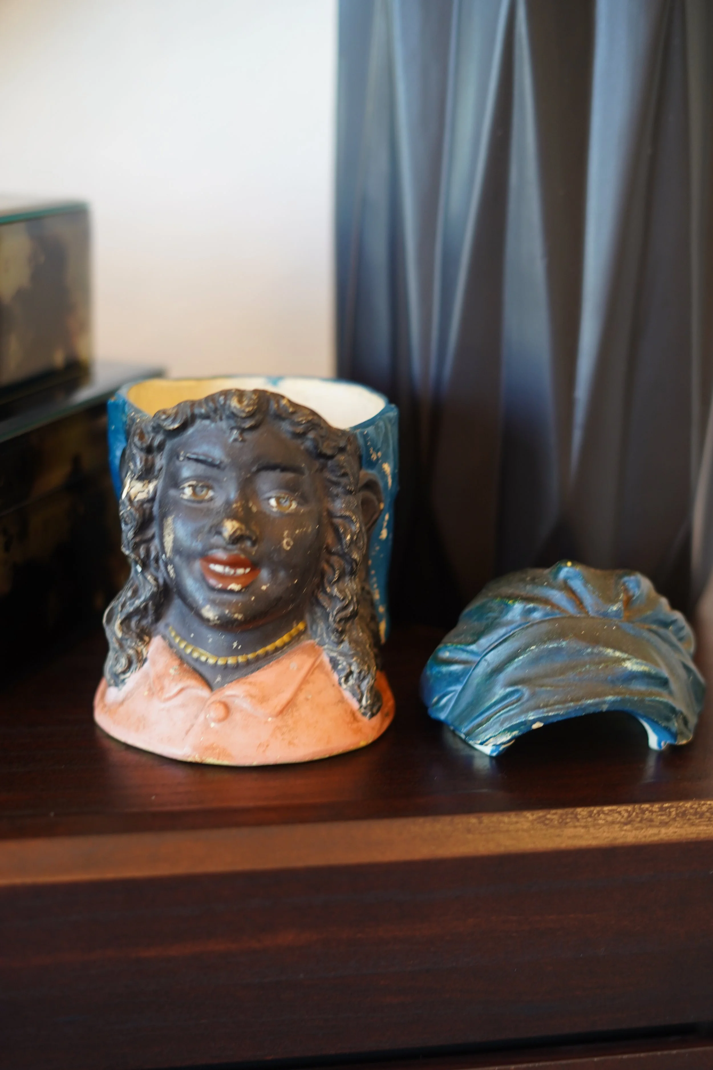 Categories: All Vases Doll Collectibles Cookie Jars Tobacco Jars Shop All | Vases | Doll Collectibles | Cookie Jars | Tobacco Jars | All Vases Doll Collectibles Cookie Jars Tobacco Jars Antique Tobacco Jar – Large Bisque Humidor of Black Moor Figure $800.00 Hand-Painted Black Moor Bust (Bisque, Early 20th Century) $800.00 Antique Porcelain Tobacco Jar – Hand-Painted Mid-Eastern Sheik Humidor $500.00 Hand-Painted Black Girl in Blue Bonnet $500.00 Antique Cigarette Humidor $800.00 Antique German Cigarette Humidor $1,000.00 Harley Davidson Motor Cycle $35.00 Sold out Couture Barbie $35.00 Midge & Baby $75.00 Sold out The Princess & The Frog $25.00 Perfume Giving Ken $25.00 Whitney Barbie $100.00 Prince Naveen $30.00 1900's Wooden, hand-carved statue, I Say A Prayer $400.00 Wooden, Hand-Carved Statue $400.00 Four Angels, JC Penny Home Collection Jar $250.00 Holiday Barbie $30.00 Sold out Army Barbie & Ken $50.00 Air Force Barbie & Ken $50.00 Sold out Flavas Tika $50.00 Barbie For President 1991 $35.00 Sold out Barbie for President $75.00 Sold out Catwoman Barbie $30.00 Sold out Lively Baby Doll $40.00 Raster Man Cookie Jar $250.00 BedTime Story Cookie Jar $175.00 Ragtime $175.00 Jazz Player $175.00 Nanna $175.00 Sold out Mrs. Claus $175.00 Watermelon Mammy $3,000.00 Sold out Granny $200.00 Sold out Sunday Best $175.00 English Lady $175.00 Jazz Diva $185.00 Bass Man $185.00 Sold out